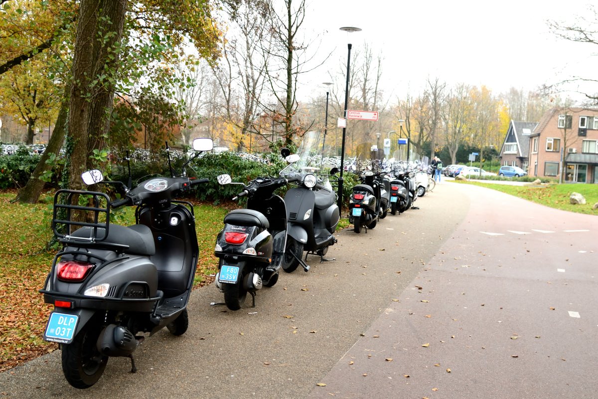 In de overdekte en bewaakte fietsenstalling is vanwege milieueisen het aantal parkeerplaatsen voor scooters beperkt tot de 8. Waardoor vorige jaar scooters veelal stonden aan de noordzijde op het plein bij het station. De laatste maanden staan deze veelal aan de zuidzijde in het Oranjepark. Daar blokkeren zij de stoep en de toegang tot de fietsenstalling of staan ze langs het fietspad hinderlijk gestald.